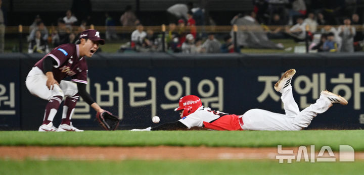 [광주=뉴시스] 이영주 기자 = 15일 오후 광주 북구 광주-기아챔피언스필드에서 열린 2026 신한 SOL KBO리그 키움히어로즈 대 KIA타이거즈의 경기. 6회 말 1사 KIA 김호령이 도루하고 있다. 2026.04.15. [email protected]