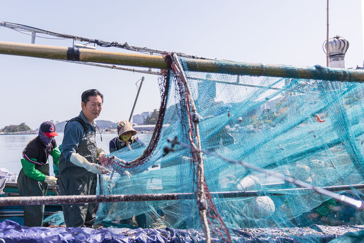 [서울=뉴시스] 조성봉 기자 = 정청래 더불어민주당 대표가 15일 오후 부산 기장군 해조류 건조 작업장에서 현장 체험을 하고 있다.(사진=더불어민주당 제공) 2026.04.15. [email protected] *재판매 및 DB 금지