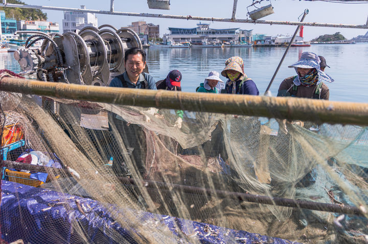 [서울=뉴시스] 조성봉 기자 = 정청래 더불어민주당 대표가 15일 오후 부산 기장군 해조류 건조 작업장에서 현장 체험을 하고 있다.(사진=더불어민주당 제공) 2026.04.15. [email protected] *재판매 및 DB 금지