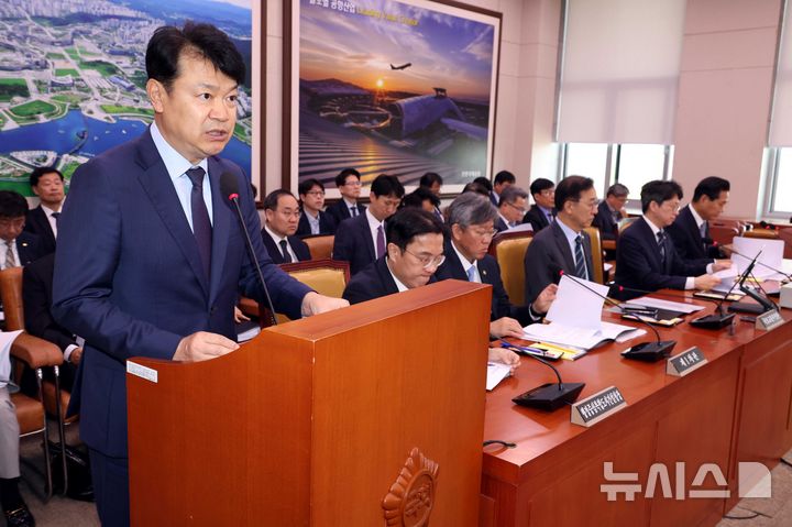 [서울=뉴시스] 조성봉 기자 = 복기왕 국회 국토교통위원회 교통법안심사소위원장이 16일 오전 서울 여의도 국회에서 열린 국토교통위원회 전체회의에서 소위원회 안건에 대한 심사 보고를 하고 있다. 2026.04.16. [email protected]