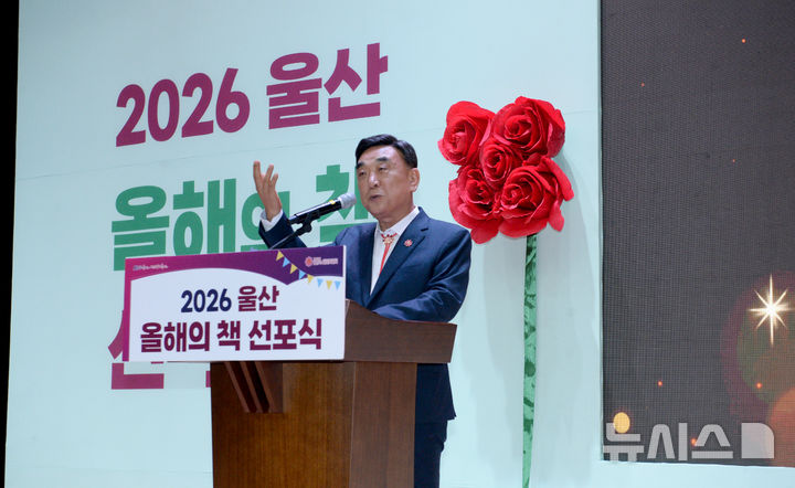 [울산=뉴시스] 배병수 기자 = 김두겸 울산시장이 16일 남구 울산도서관 1층 대강당에서 열린 2026년 울산 올해의 책 선포식에서 인사말을 하고 있다. 2026.04.16. [email protected].