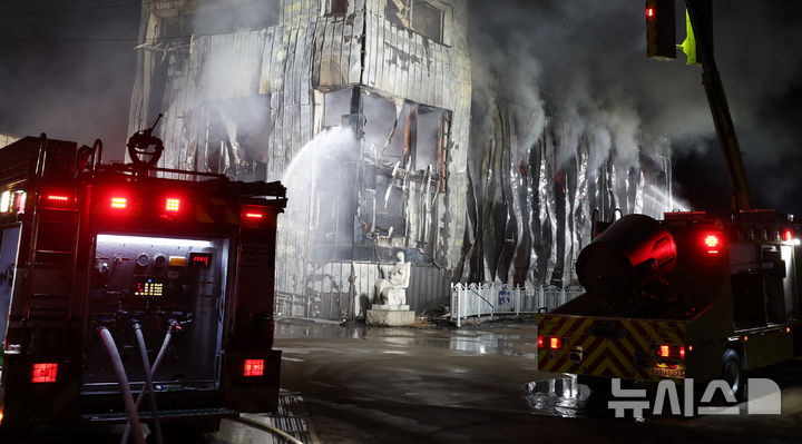 관산동 공장 화재 진화하는 소방관들