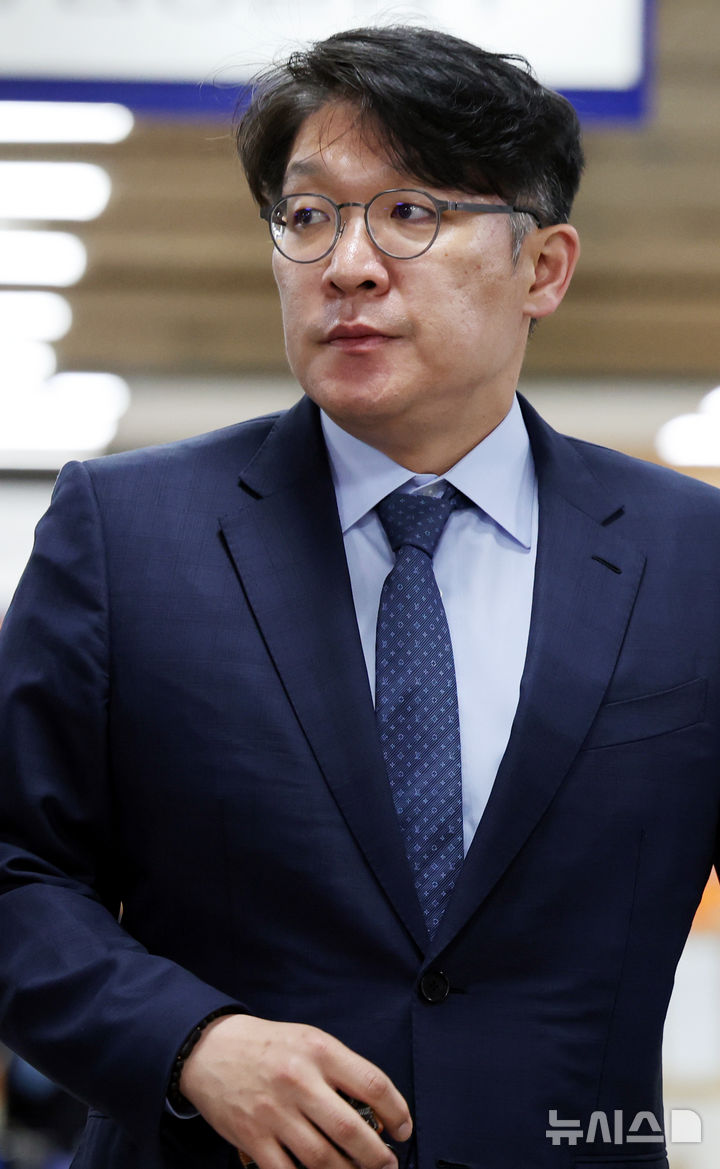 [서울=뉴시스] 박주성 기자 = '이우환 그림 매관매직 의혹’을 받는 김상민 전 부장검사가 17일 오전 서울 서초구 서울중앙지방법원에서 열린 공판에 출석하고 있다. 2026.04.17. [email protected]