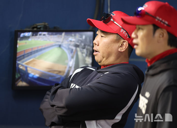 [서울=뉴시스] 이영환 기자 = 17일 오후 서울 송파구 잠실야구장에서 열린 2026 KBO리그 KIA 타이거즈와 두산 베어스의 경기, 4회초 KIA 이범호 감독이 경기를 지켜보고 있다. 2026.04.17. [email protected]