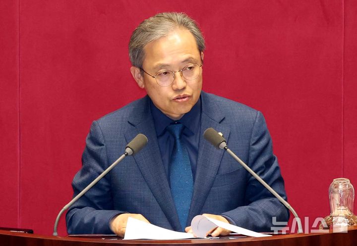[서울=뉴시스] 조성봉 기자 = 송기헌 국회 정치개혁특별위원회 위원장이 18일 오전 서울 여의도 국회에서 열린 제434회국회(임시회) 제6차 본회의에서 정치관계법 관련 법안들에 대해 제안설명을 하고 있다. 2026.04.18. [email protected]