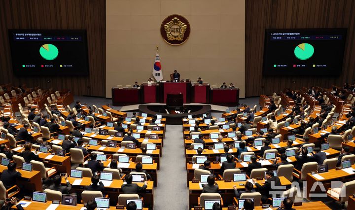 [서울=뉴시스] 조성봉 기자 = 18일 오전 서울 여의도 국회에서 열린 제434회국회(임시회) 제6차 본회의에서 공직선거법 일부개정법률안(대안)이 가결되고 있다. 2026.04.18. [email protected]
