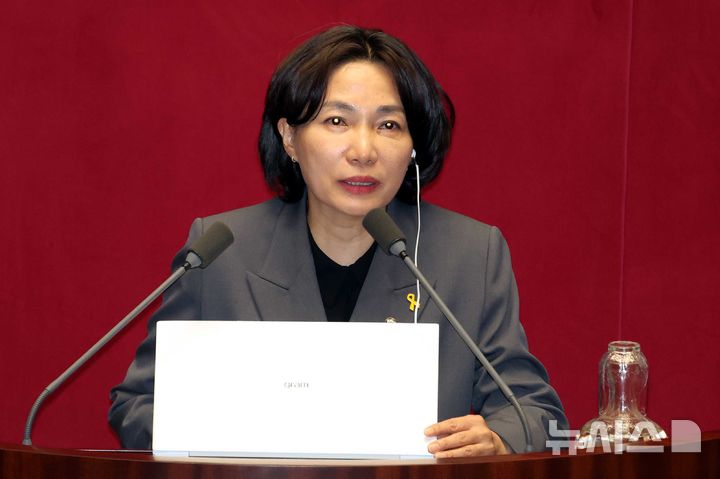 [서울=뉴시스] 조성봉 기자 = 서미화 더불어민주당 의원이 18일 오전 서울 여의도 국회에서 열린 제434회국회(임시회) 제6차 본회의에서  '장애인 정치참여 확대' 위한 정치자금법 개정안 관련 발언을 하고 있다. 2026.04.18. [email protected]