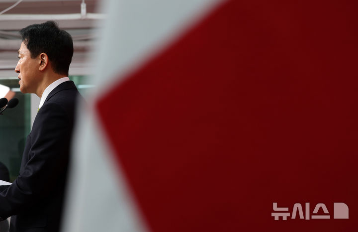 [서울=뉴시스] 홍효식 기자 = 국민의힘 지방선거 서울시장 후보에 선출된 오세훈 서울시장이 18일 오전 서울 여의도 국민의힘 당사에서 서울시장 후보 선출 관련 기자회견을 하고 있다. 2026.04.18. [email protected]