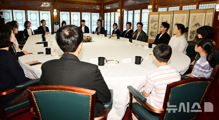 [서울=뉴시스] 홍효식 기자 = 김민석 국무총리가 18일 오후 서울 삼청동 총리공관에서 서울 당현초 환경동아리 학생 등 초·중·고 환경동아리, 청년 기후활동 단체와 간담회를 하고 있다. (공동취재) 2026.04.18. [email protected]