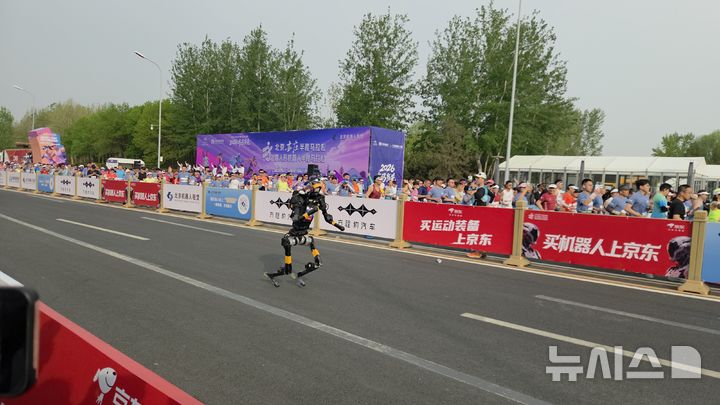 [베이징=뉴시스]박정규 특파원 = 19일 중국 베이징 이좡에서 열린 하프마라톤에서 대회에 참가한 휴머노이드 로봇이 출발해 달리고 있다. 2026.04.19. [email protected]