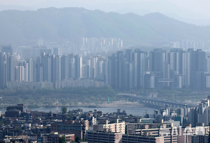 [서울=뉴시스] 배훈식 기자 = 서울 민간아파트 3.3㎡(1평)당 분양 가격이 약 5489만원으로 두 달만에 최고치를 경신했다. 사진은 19일 오후 서울 중구 남산에서 바라본 도심 아파트 모습. 2026.04.19. [email protected]