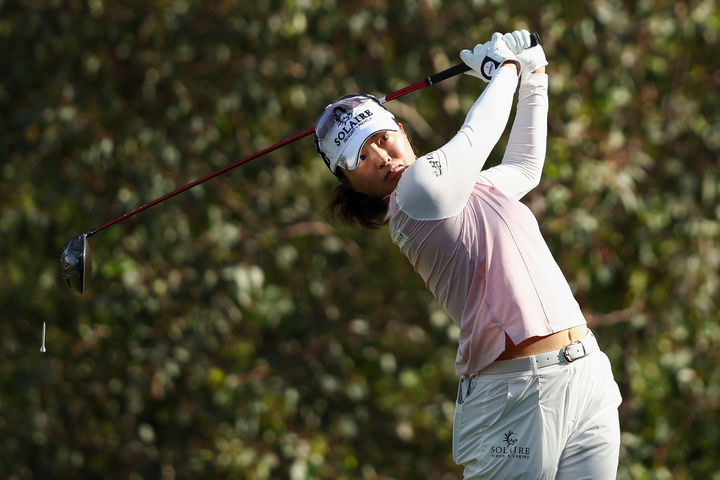 [로스앤젤레스=AP/뉴시스] 고진영이 19일(현지 시간) 미 캘리포니아주 로스앤젤레스 엘 카바예로 컨트리클럽에서 열린 미국여자프로골프(LPGA) 투어 JM 이글 LA 챔피언십 최종 라운드 3번 홀에서 티샷하고 있다. 고진영은 최종 합계 4오버파 292타로 최하위인 65위를 기록했다. 2026.04.20.