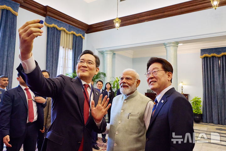 이재명 대통령·모디 총리·이재용 회장 '셀카'