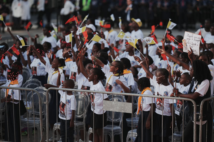 레오 14세 교황 도착 기다리는 앙골라 어린이들