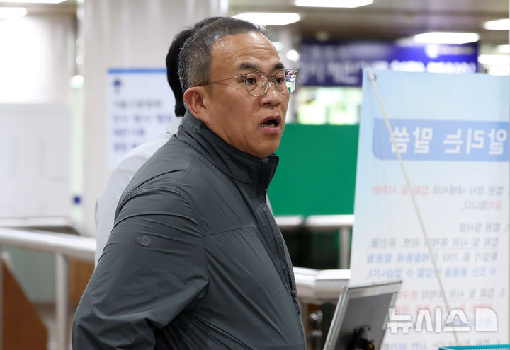 [서울=뉴시스] 이영환 기자 = 무상 여론조사 관련 정치자금법 위반 혐의로 재판을 받고 있는 명태균씨가 21일 오전 서울 서초구 서울중앙지법에서 열린 5차 공판에 출석하고 있다. 2026.04.21. [email protected]