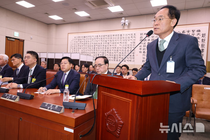 [서울=뉴시스] 조성봉 기자 = 강백신 대구고등검찰청 검사가 21일 오전 서울 여의도 국회 윤석열정권정치검찰조작기소의혹사건진상규명국정조사특별위원회에서 열린 서해 공무원 피격통계조작·윤석열 명예훼손 허위보도 조작기소의혹 사건 청문회에서 의원 질의에 답변하고 있다. 2026.04.21. [email protected]