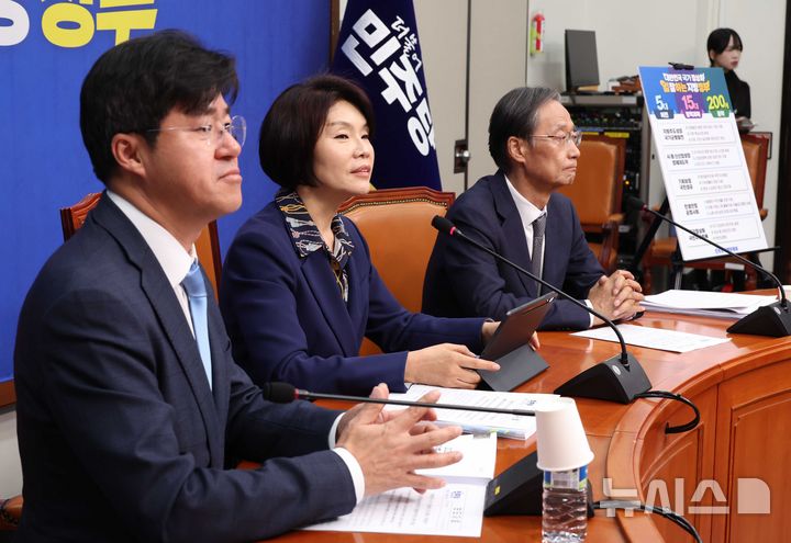 [서울=뉴시스] 조성봉 기자 = 한정애 더불어민주당 정책위의장이 22일 오전 서울 여의도 국회에서 열린 '대한민국 국가 정상화, 일 잘하는 지방정부'-제9회 전국동시지방선거 민주당 공약 발표에서 발언을 하고 있다.  2026.04.22. [email protected]