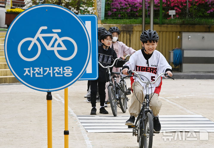 이날 실시된 안전교육은 보호장구 착용 요령, 교통표지판과 법규, 안전주행 방법 등으로 진행됐다. 2026.04.22. [email protected]