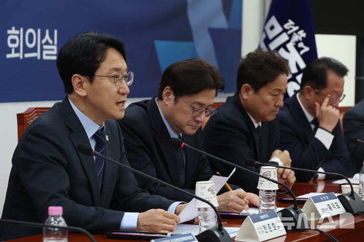 [서울=뉴시스] 고승민 기자 = 천준호 더불어민주당 원내대표 직무대행이 22일 서울 여의도 국회에서 열린 균형성장 주요현안 당-정-청 정책간담회에서 발언하고 있다. 2026.04.22. [email protected]