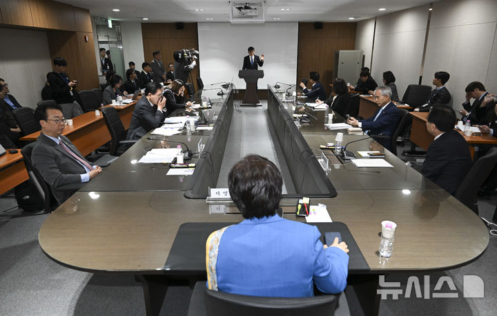 [서울=뉴시스] 국회사진기자단= 정상우 감사원 사무총장이 23일 서울 종로구 감사원에서 열린 윤석열 정권 정치검찰 조작기소 의혹 사건 진상규명 국정조사특별위원회 현장조사에서 현황 보고를 하고 있다. 2026.04.23. [email protected]