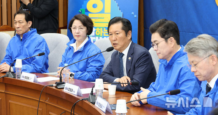 민주당 16개 광역단체장 후보자 연석회의, 발언하는 정청래 대표