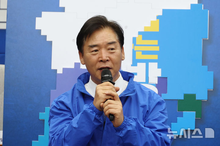 [서울=뉴시스] 고승민 기자 = 오중기 더불어민주당 경상북도지사 후보가 23일 서울 여의도 국회에서 열린 16개 광역단체장 후보자 연석회의에서 각오를 밝히고 있다. 2026.04.23. [email protected]
