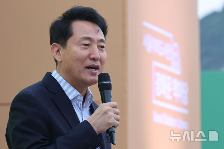 [서울=뉴시스] 권창회 기자 = 오세훈 서울시장이 23일 서울 종로구 광화문광장에서 열린 2026 서울야외도서관 광화문책마당 개장 행사에서 인사말을 하고 있다. 2026.04.23. [email protected]