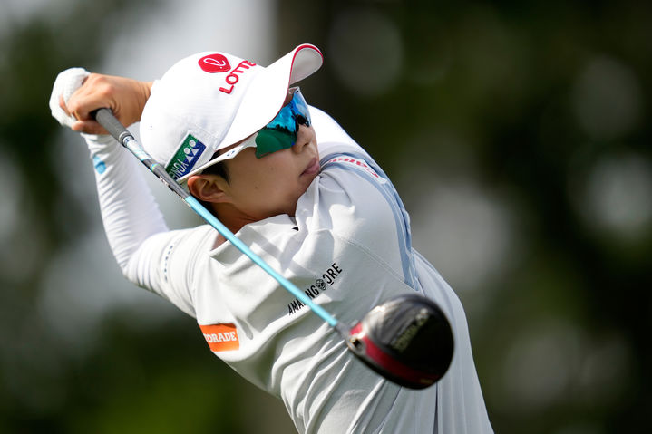 [휴스턴=AP/뉴시스] 김효주가 23일(현지 시간) 미 텍사스주 휴스턴의 메모리얼 파크 골프코스에서 열린 미국여자프로골프(LPGA) 셰브론 챔피언십 첫날 5번 홀에서 티샷하고 있다. 김효주는 2언더파 70타 공동 18위에 이름을 올렸다. 2026.04.24.