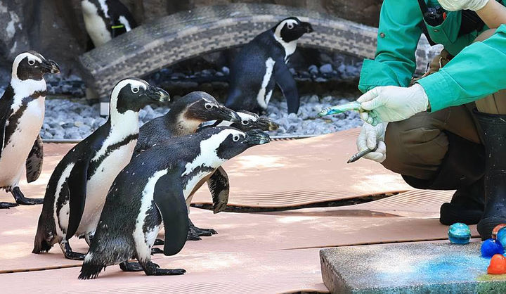 [서울=뉴시스] 세계 펭귄의 날(4월 25일)을 하루 앞둔 24일 경기 용인시 에버랜드에서 주키퍼(사육사)들이 펭귄들에게 특식을 주고 있다. (사진=에버랜드 제공) 2026.04.24. [email protected]