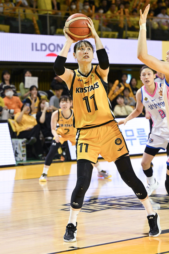 국민은행은 이날 삼성생명과의 2차전 홈 경기에서 59-51로 승리하며 통합 우승까지 단 1승만을 남겼다. (사진=WKBL 제공) 2026.04.24. [email protected] *재판매 및 DB 금지