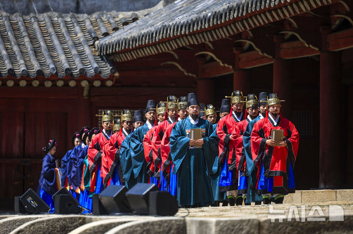 [서울=뉴시스] 정병혁 기자 = 26일 서울 종로구 종묘 양녕전에서 종묘 묘현례 행사가 진행되고 있다.
