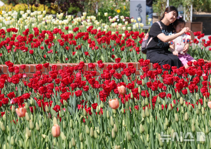 [고양=뉴시스] 박주성 기자 = 26일 경기도 고양시 일산동구 일산호수공원에서 열린 '2026 고양국제꽃박람회' 에서 관람객들이 꽃들을 관람하고 있다. 2026.04.26. [email protected]