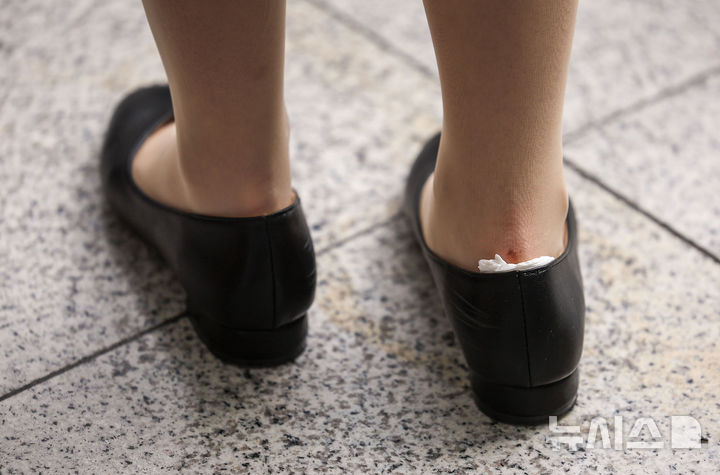 [서울=뉴시스] 정병혁 기자 = 28일 서울 서초구 aT센터에서 열린 2026 대한민국 상생 채용박람회에서 한 구직자가 발목에 휴지를 낀 채 상담을 기다리고 있다. 2026.04.28. [email protected]