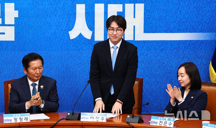 [서울=뉴시스] 김명년 기자 = 하정우 전 청와대 AI 미래기획수석비서관이 29일 오전 서울 여의도 국회에서 열린 더불어민주당 인재영입식에서 인사하고 있다. 2026.04.29. [email protected]
