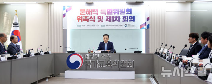 [서울=뉴시스] 김선웅 기자 = 차정인 국가교육위원장이 29일 서울 종로구 정부서울청사에서 열린 국가교육위원회 문해력 특별위원회 위촉식 및 제1차 회의에서 인사말을 하고 있다. 2026.04.29. [email protected]