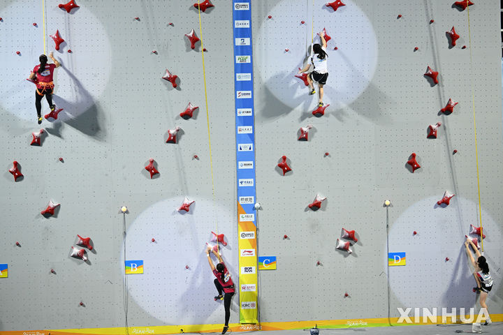 스포츠클라이밍 릴레이 결승 펼치는 정지민-성한아름