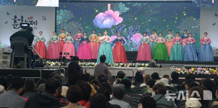 [남원=뉴시스] 김얼 기자 = 제96회 남원 춘향제 개막일인 30일 전북 남원시 요천로 특설무대에서 글로벌 춘향 선발대회가 펼쳐지고 있다. 2026.04.30. [email protected]