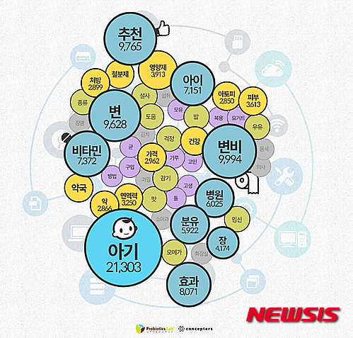 빅데이터 결과 총 216만8877건의 소비자 콘텐츠가 조사됐으며 가장 많이 언급된 키워드는 아기(2만1303건), 변비(9994건), 추천(9765건) 등의 순이었다.