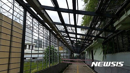 높다란 회색 콘크리트벽, 그 위로 끝없이 이어진 철조망으로 둘러싸인 구치소 내부는 음산한 분위기가 걷히지 않았다. 사람의 흔적을 찾아볼 수 없고 잡초들만 무성하게 자라 있었다.