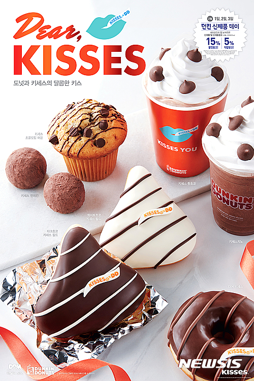이외에도 던킨도너츠는 '키세스 먼치킨', '키세스 초콜릿칩 머핀' 등 키세스 초콜릿을 활용한 다양한 제품을 함께 선보일 예정이다.