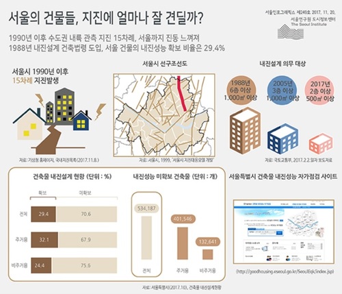 서울연구원은 "서울시 건축물 내진성능 자가점검 사이트(http://goodhousing.eseoul.go.kr/SeoulEqk/index.jsp)를 활용하면 건축물 내진설계 여부를 확인할 수 있다"고 설명했다.