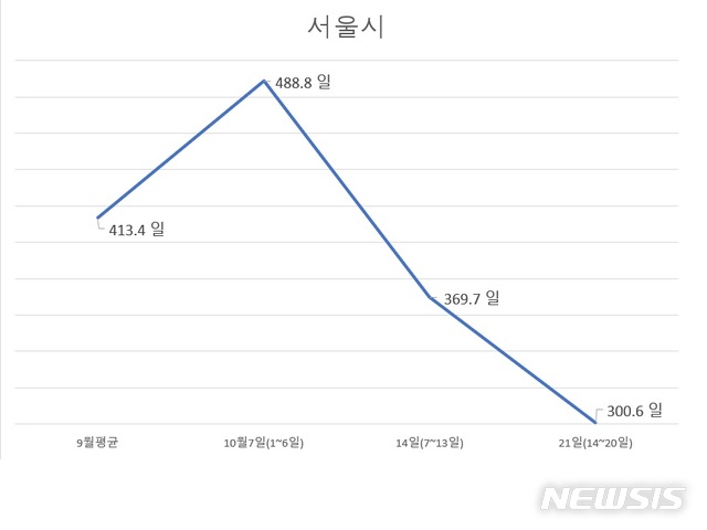 하지만 이후 14일 기준(7~13일) 369.7건으로 전주대비 24.4% 줄었다. 21일(14~20일)에 이르면 300.6건으로 18.7% 감소해 월초 대비 38.5% 줄었다.
