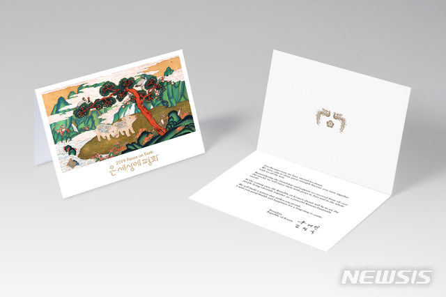 한편, 이번 연하장은 십장생도에 기해년(己亥年) 띠 동물인 돼지 두 마리가 등장하는 현대적 한국화를 표지로 디자인 됐다. 전통 민화와 서구의 팝아트를 동시에 연상시키는 표지 그림은 한국화가 곽수연씨의 작품이다.