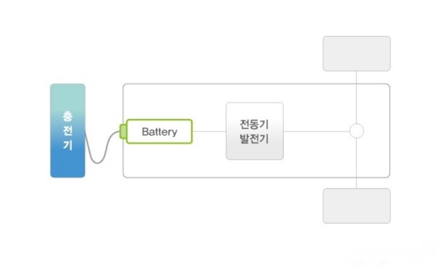 EV(순수 전기차)는 100% 전기에너지로만 주행하는 자동차입니다. 따라서 HEV나 PHEV와는 달리 내연기관없이, 전기모터와 배터리만 있다.