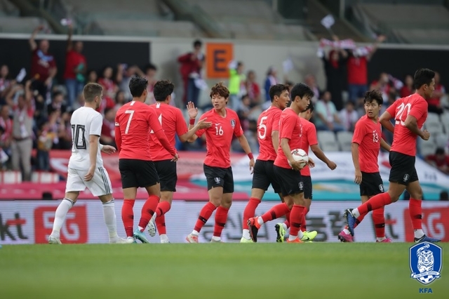 후반 6분에는 막내 이강인이 프리킥으로 기회를 엿봤다. 이강인의 왼발 프리킥은 수비벽을 넘겨 골대를 때렸다. 후반 17분 두 명의 선수가 투입됐다. 손흥민과 황희찬이 빠지고 나상호(FC도쿄)와 이동경(울산)이 그라운드를 밟았다.