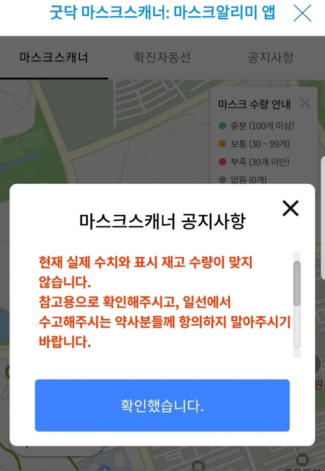 아울러 앱의 재고 현황이 부정확한 것과 관련해 과기정통부는 "중복확인시스템을 통한 업무처리가 지연되거나 약국에서 입력이 어려운 현장 상황 발생 등으로 앱에서 재고량과 실제 약국의 재고량이 달라 이용자 불편이 초래됐다"고 밝혔다.