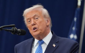[워싱턴=AP/뉴시스]도널드 트럼프 미국 대통령이 4일(현지시간) 백악관 제임스 브래디 브리핑실에서 브리핑하고 있다. 트럼프 대통령은 앞서 한 언론사와의 인터뷰 도중 한국의 코로나19 통계에 대해 믿지 못하겠다는 태도를 보여 논란을 일으켰다. 2020.08.05.