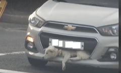 차량 앞 범퍼에 끼인 '백구' 사진, 온라인서 논란…"학대 vs 사고"(종합)
