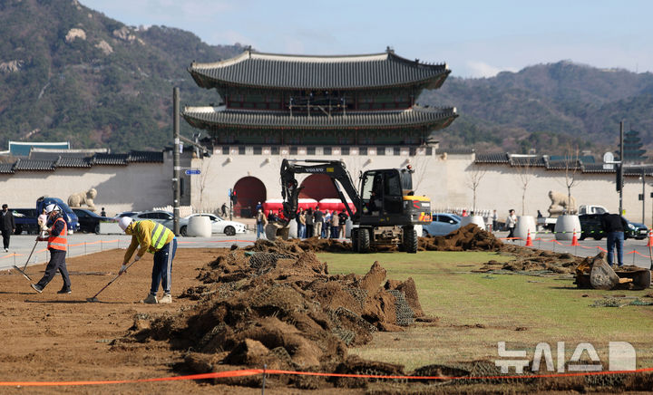 광화문광장, 봄맞이 겸 BTS 공연 후 원상 복구 위해 잔디 교체