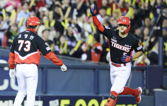 KIA 김도영, 시즌 마수걸이 홈런 LG 톨허스트 상대로 투런포